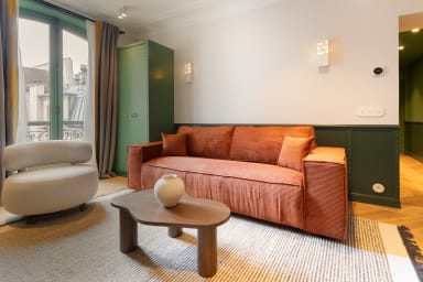 Welcome to this magnificent 50 sqm apartment, custom-designed by our architects, located just a stone's throw from the Opera Garnier on Rue Saint-Lazare. This fully air-conditioned one-bedroom apartment is ideal for a luxury stay for 4 people, in one of the most beautiful and central districts of Paris. We offer a daily maid service for an exceptional stay.